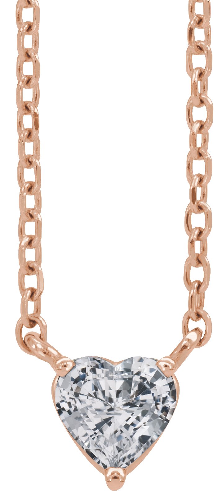 14K Rose Natural White Sapphire Heart 16 to 18 inch Necklace Ref 19139393