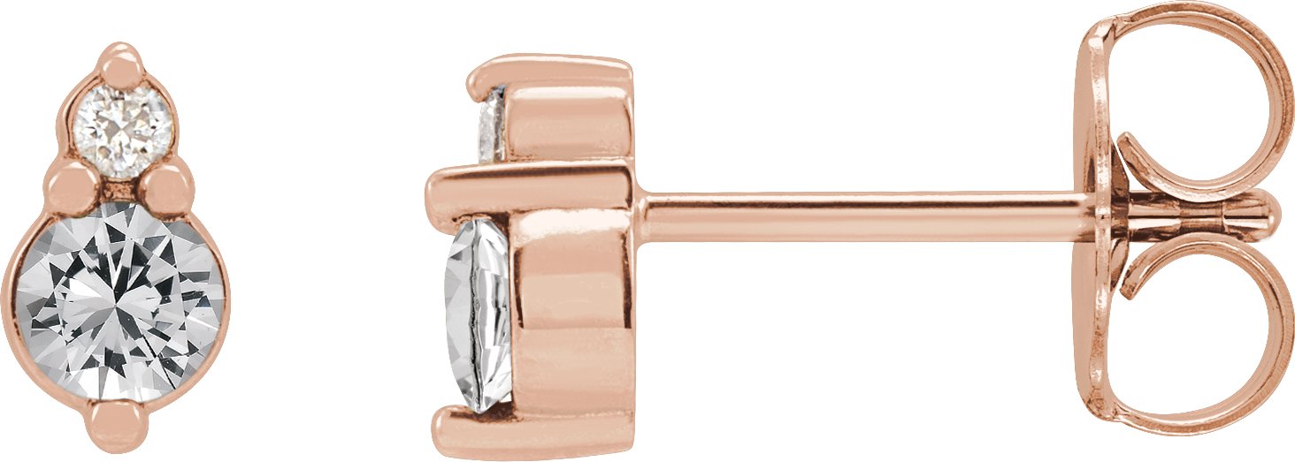 14K Rose Natural White Sapphire and .03 Natural Diamond Earrings Ref 18483636