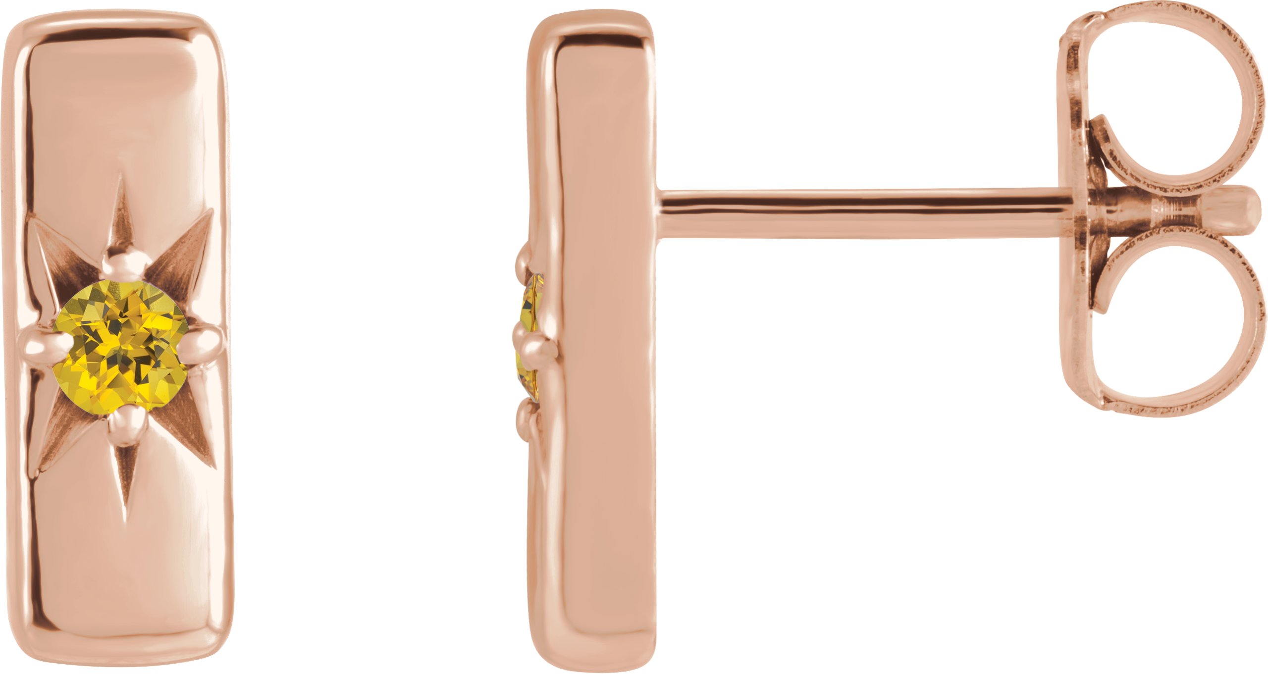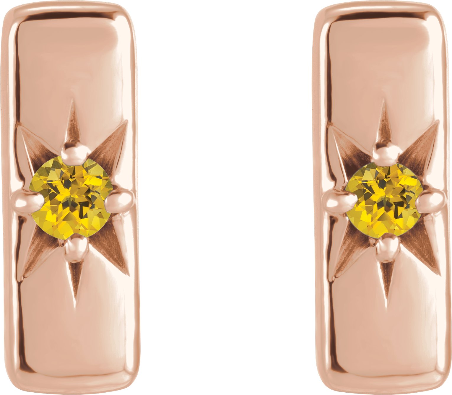 14K Rose Natural Yellow Sapphire Starburst Bar Earrings Ref 16685656