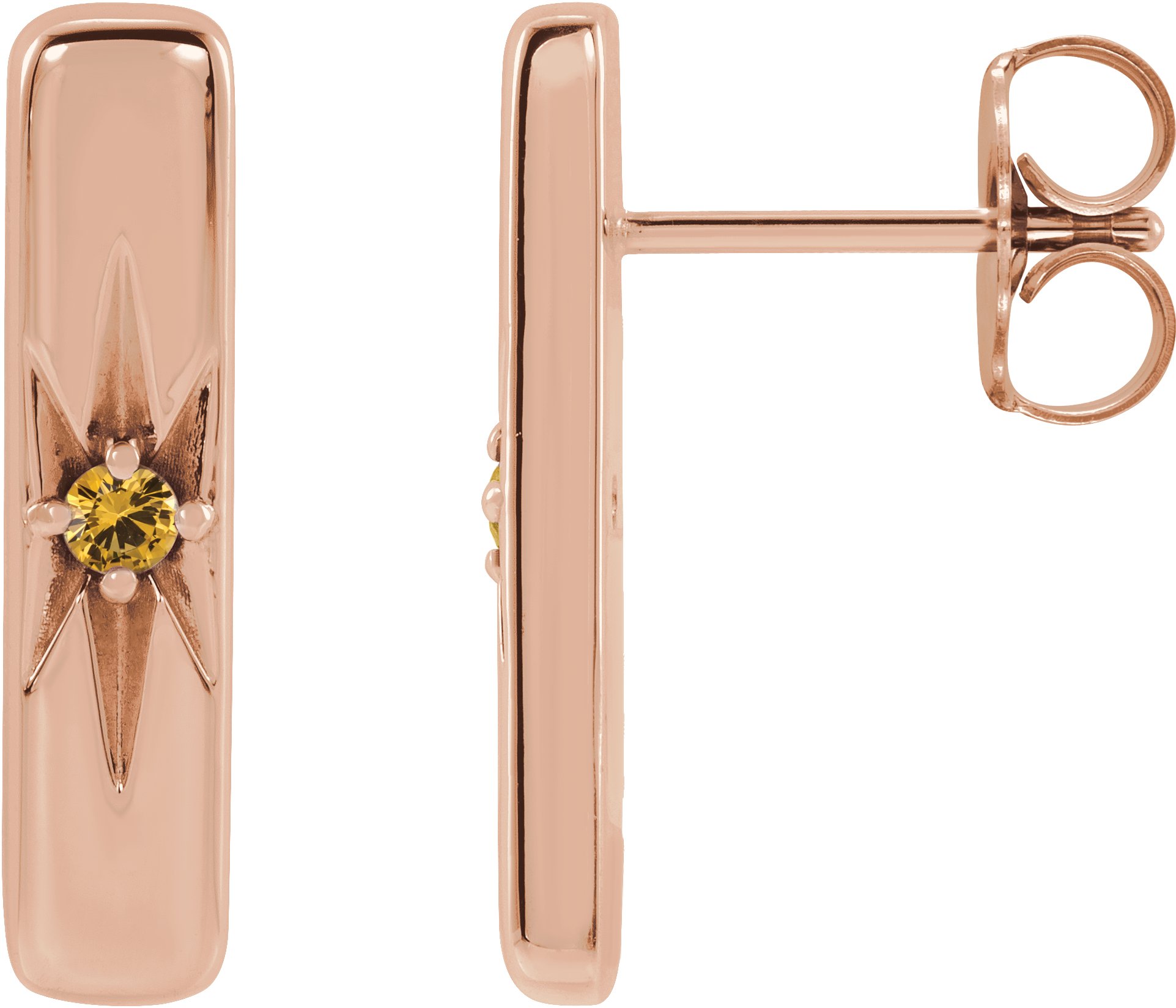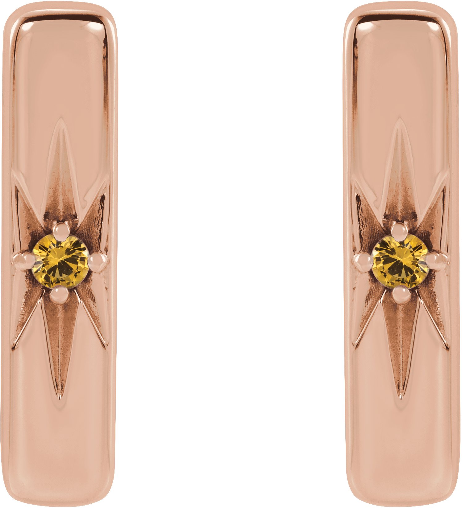 14K Rose Natural Yellow Sapphire Starburst Bar Earrings Ref 17342812