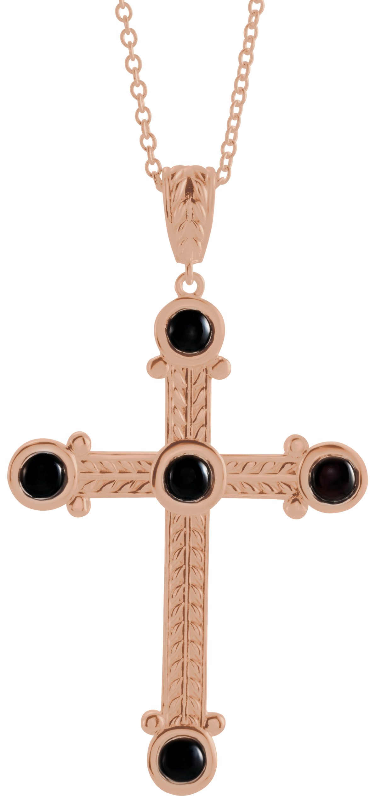 14K Rose Onyx Cross 16 18" Necklace Ref. 16616260