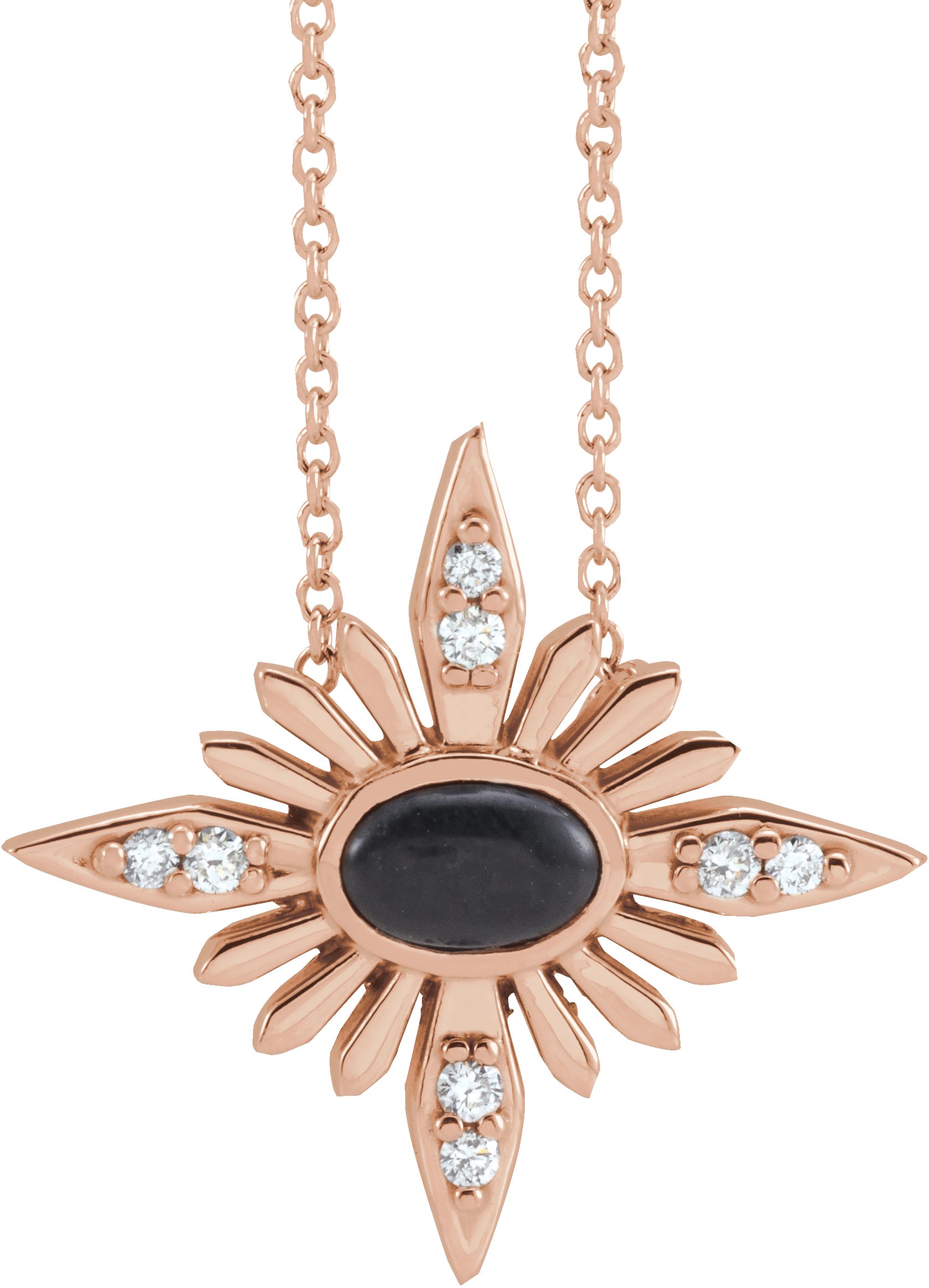 14K Rose Onyx & .08 CTW Diamond Celestial 16 18 inch Necklace