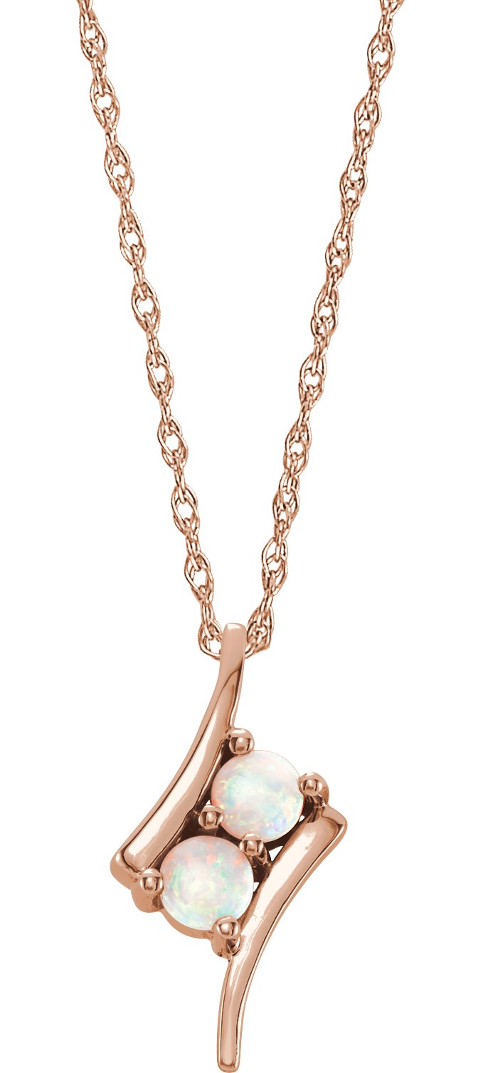 14K Rose Opal Two Stone 16 18 inch Necklace