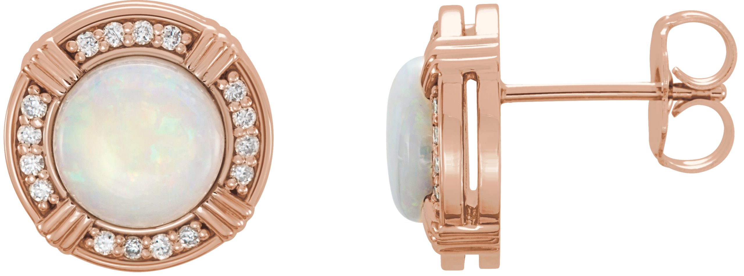 14K Rose Opal & 1/8 CTW Diamond Earrings