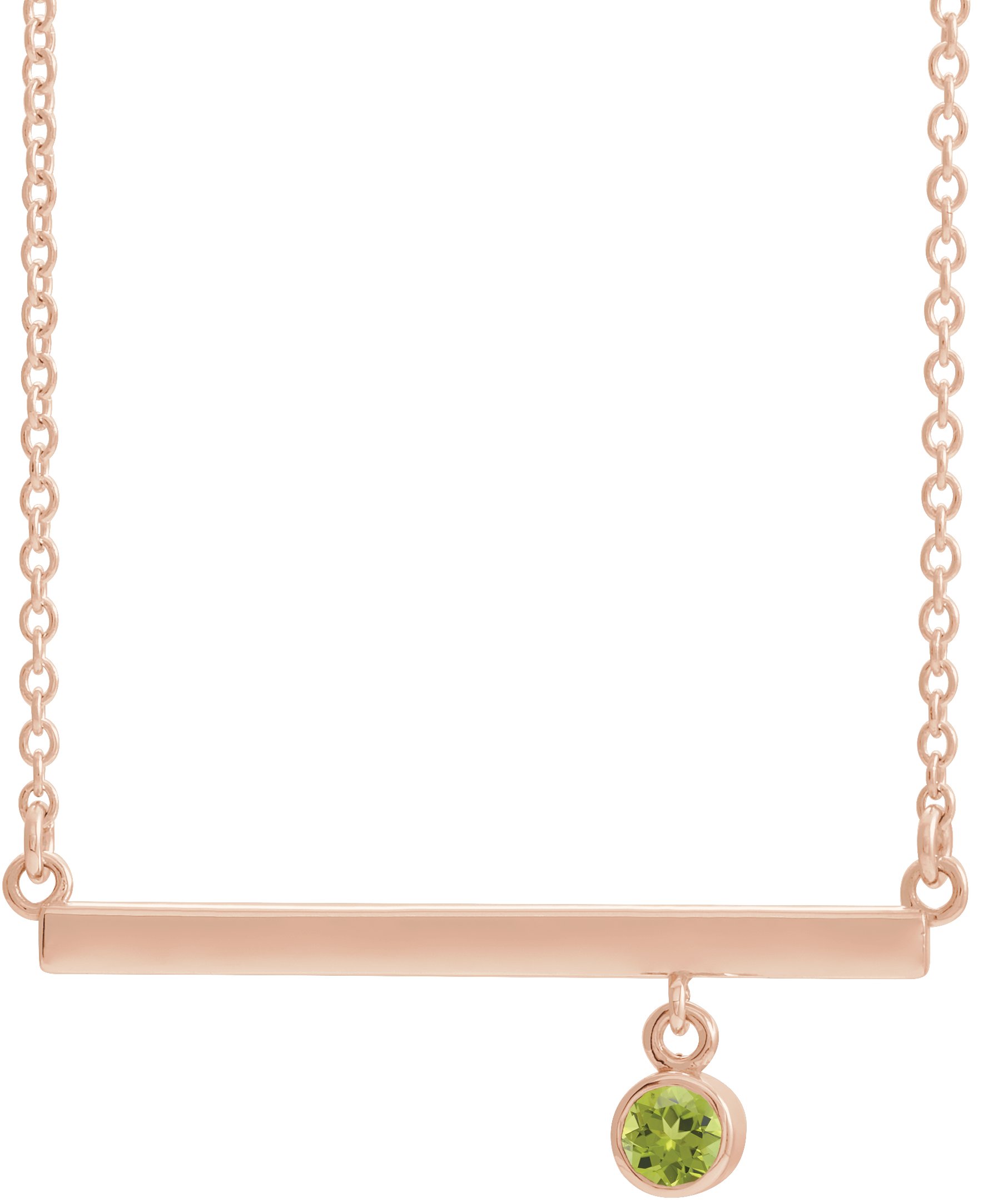 14K Rose Peridot Bezel Set 16 inch Bar Necklace