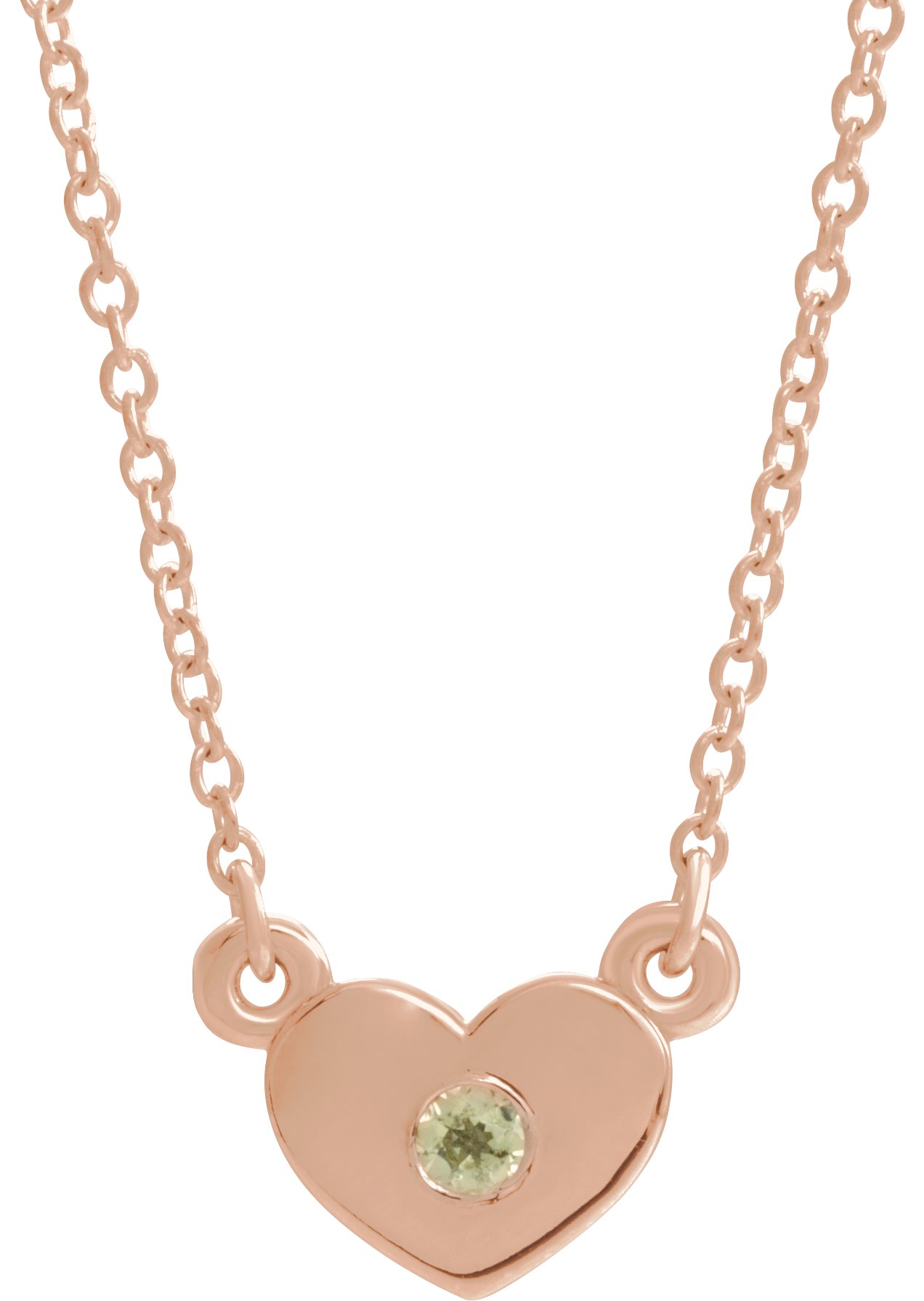 14K Rose Peridot Heart 16 inch Necklace