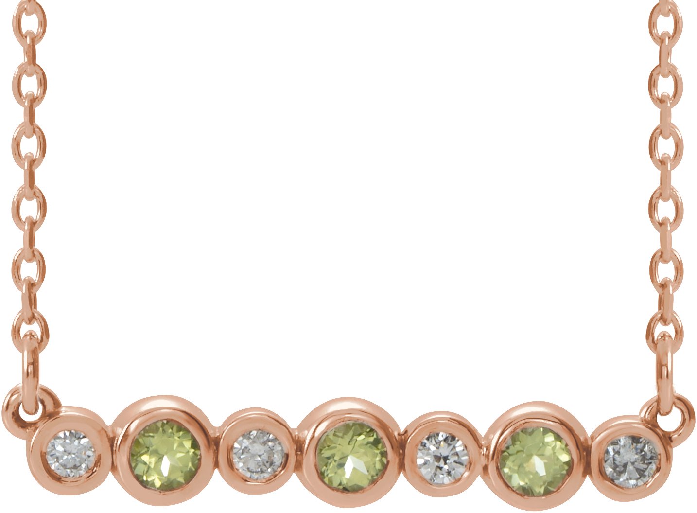 14K Rose Peridot & .08 CTW Diamond Bezel Set Bar 16 18" Necklace Ref. 14204938