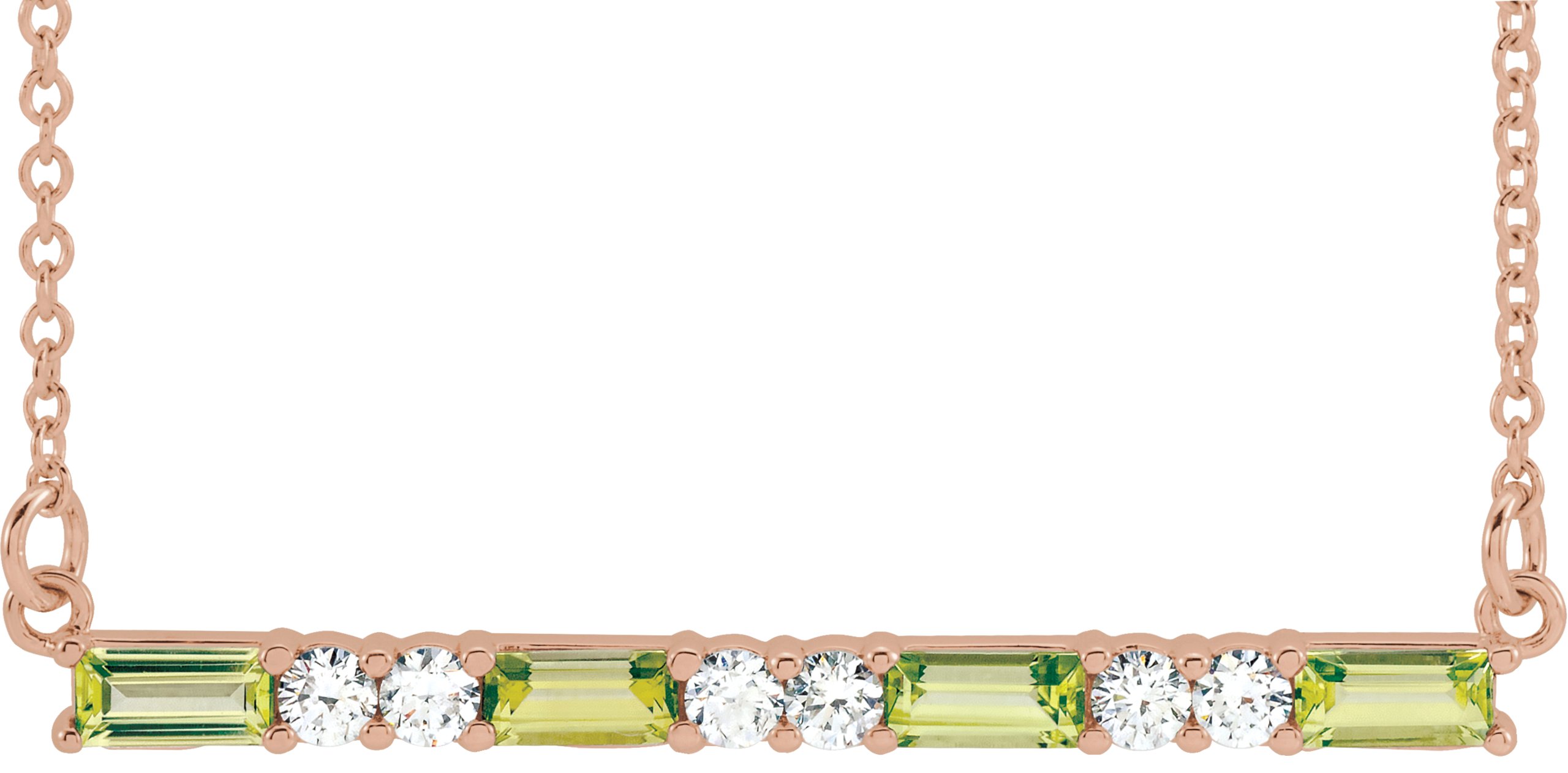 14K Rose Peridot & 1/5 CTW Diamond Bar 16 18 inch Necklace
