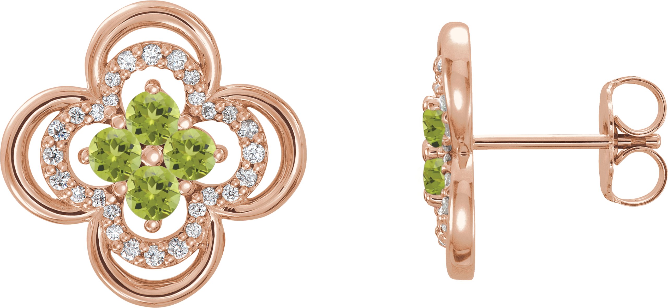14K Rose Peridot & 1/5 CTW Diamond Clover Earrings