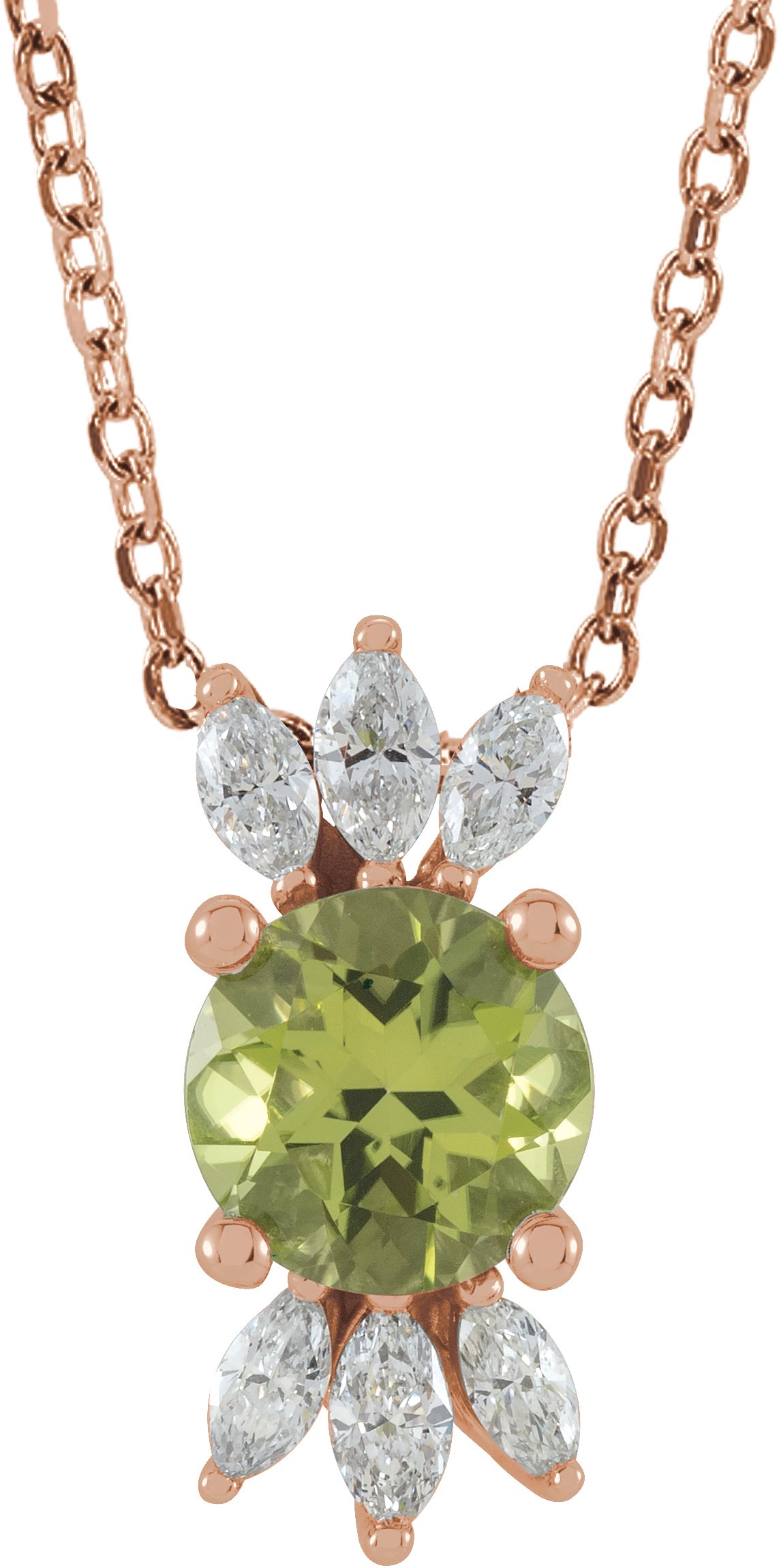 14K Rose Peridot & 1/4 CTW Diamond 16 18 inch Necklace