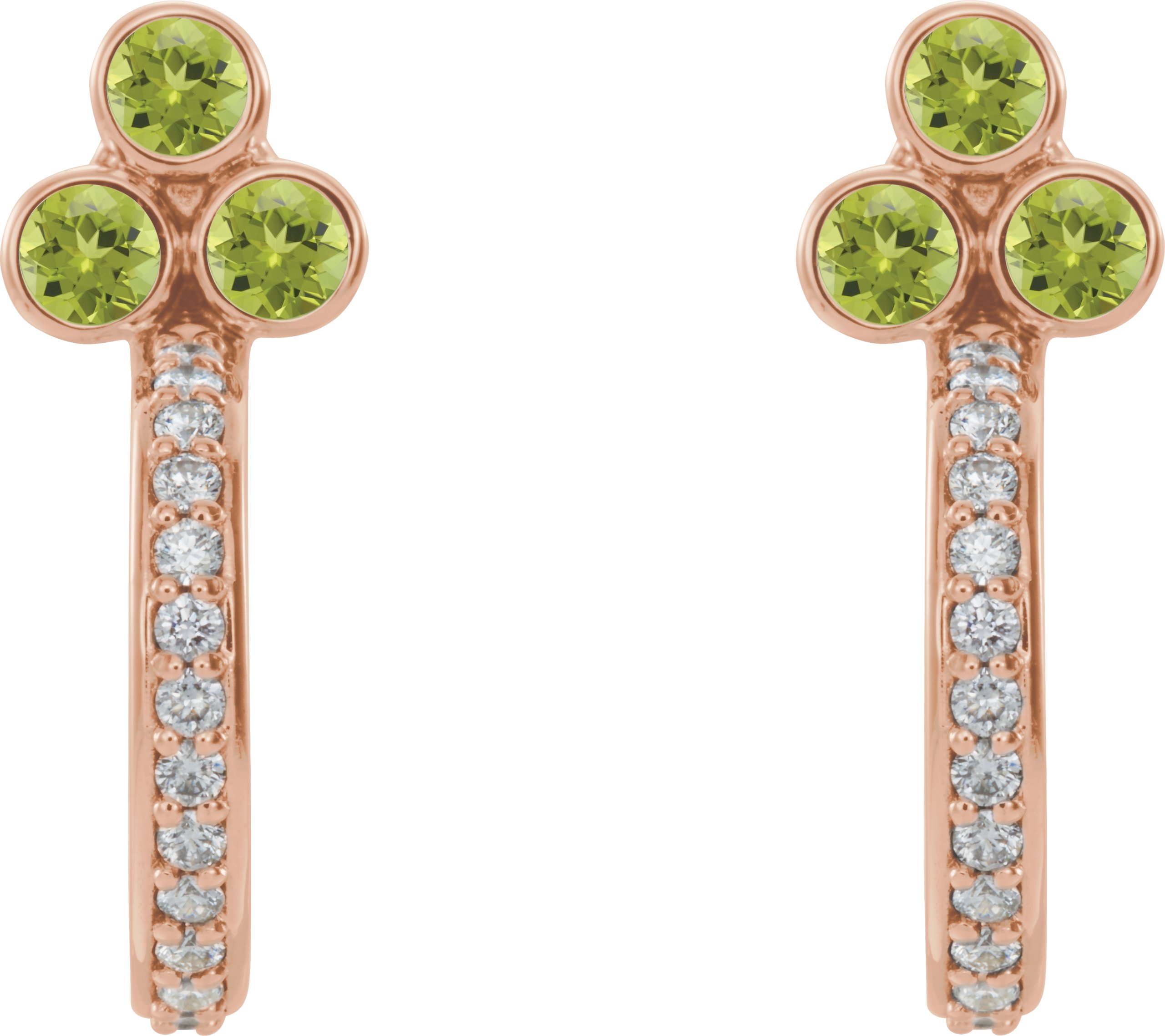 14K Rose Peridot & 1/4 CTW Diamond J Hoop Earrings