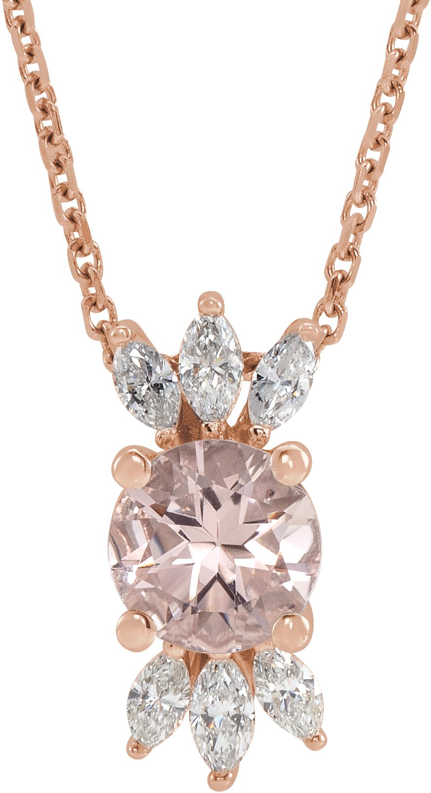 14K Rose Pink Morganite & 1/4 CTW Diamond 16 18 inch Necklace