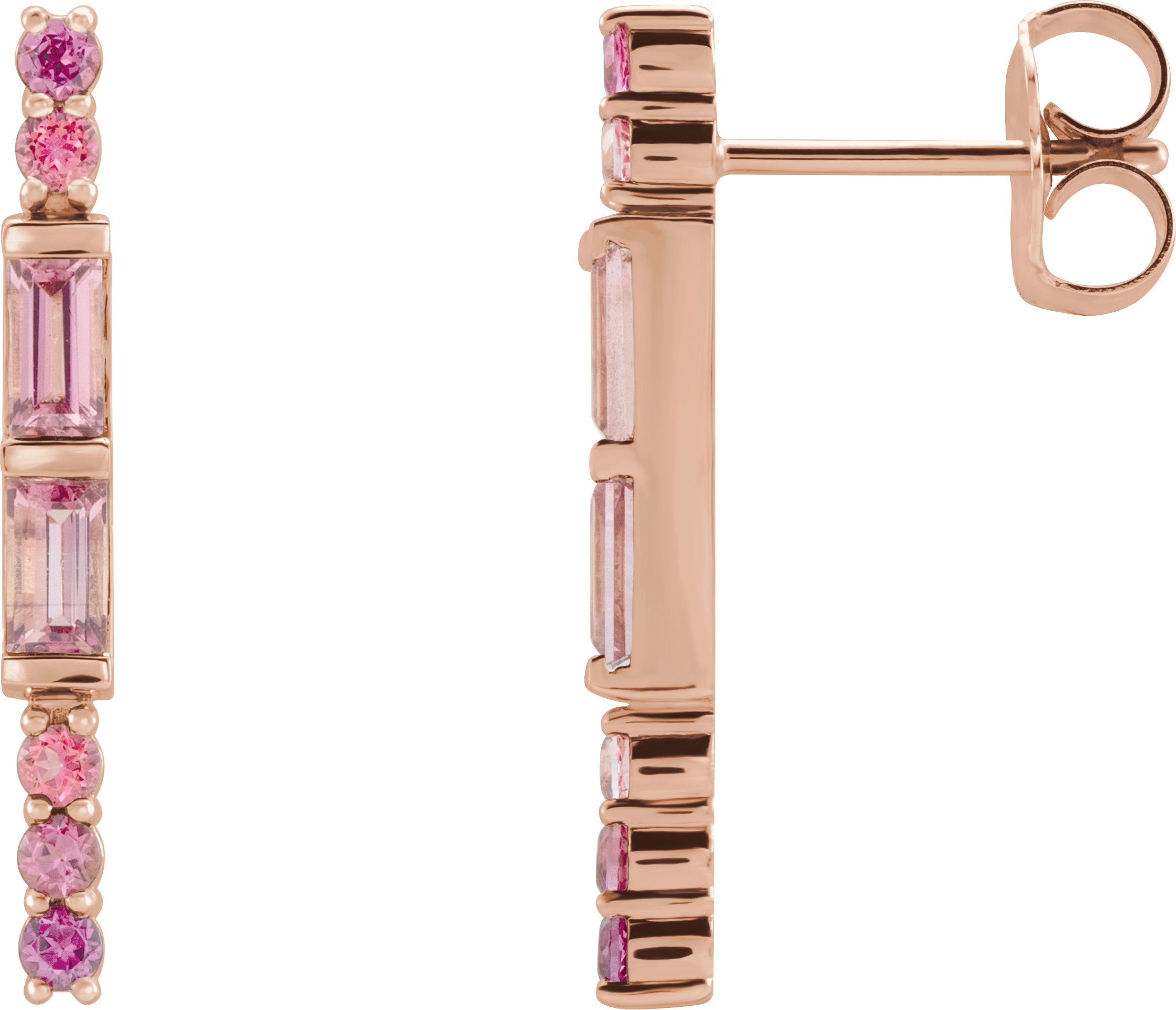 14K Rose Pink Multi Gemstone Bar Earrings