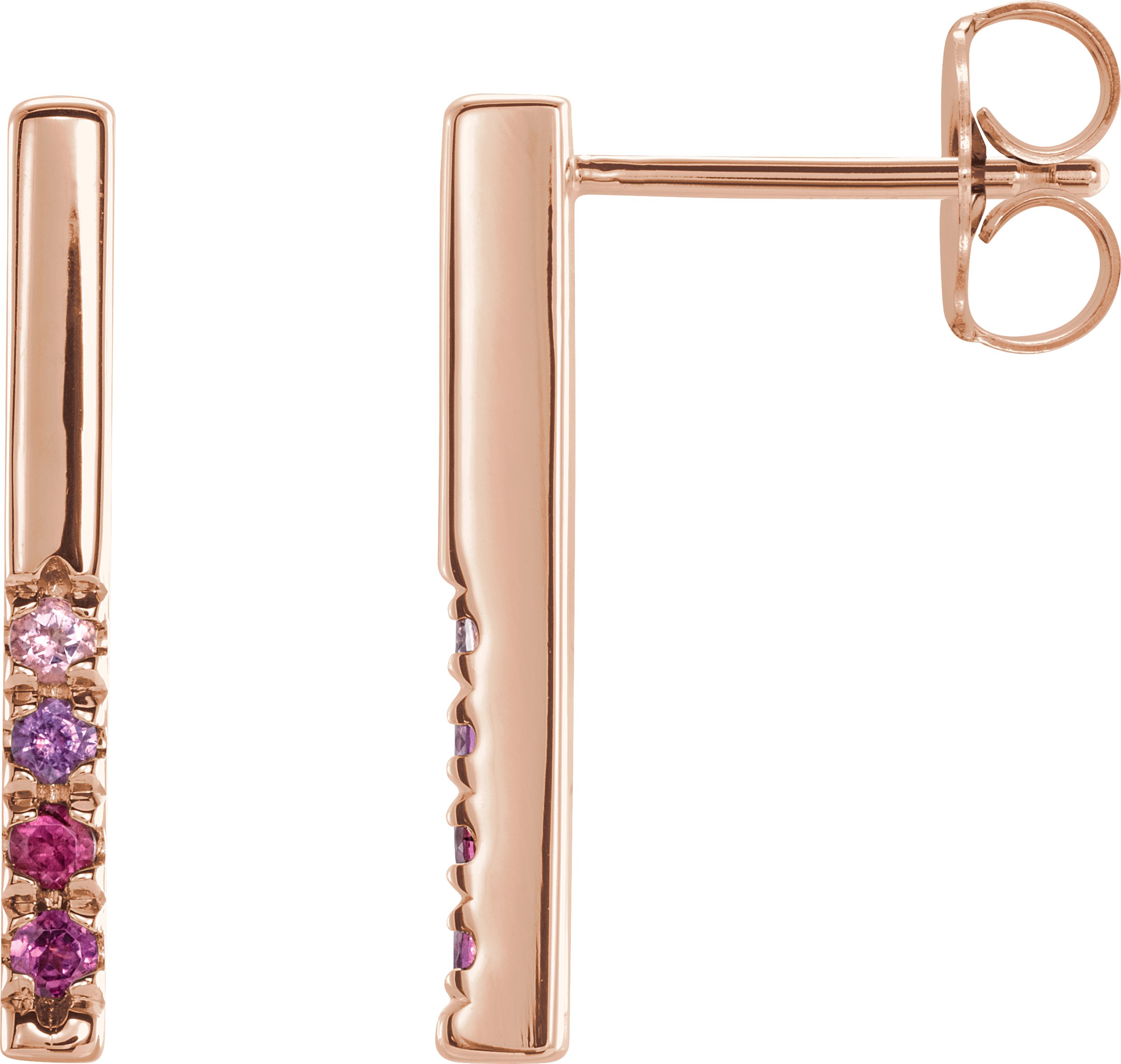 14K Rose Pink Multi Gemstone French Set Bar Earrings