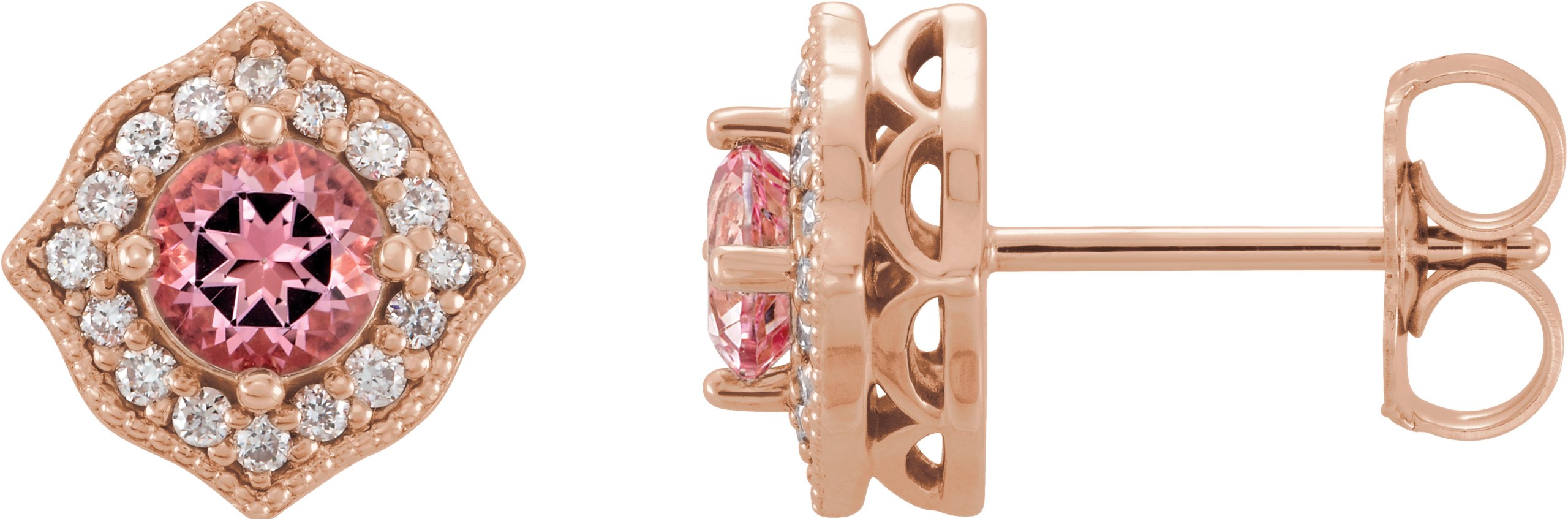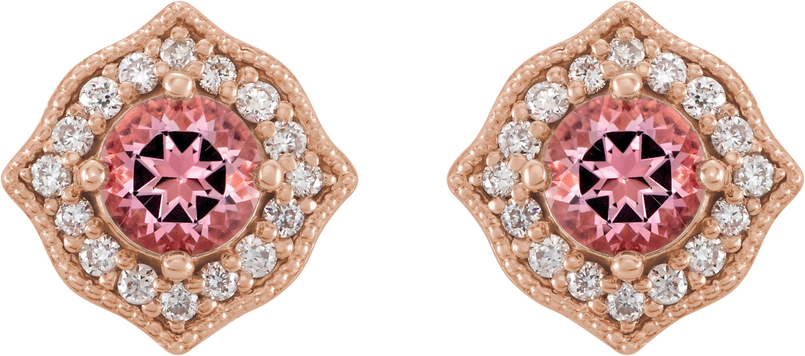 14K Rose Pink Topaz and 1/8 CTW Diamond Earrings