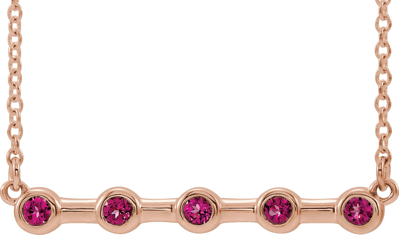 14K Rose Pink Tourmaline Bezel Set Bar 16 inch Necklace
