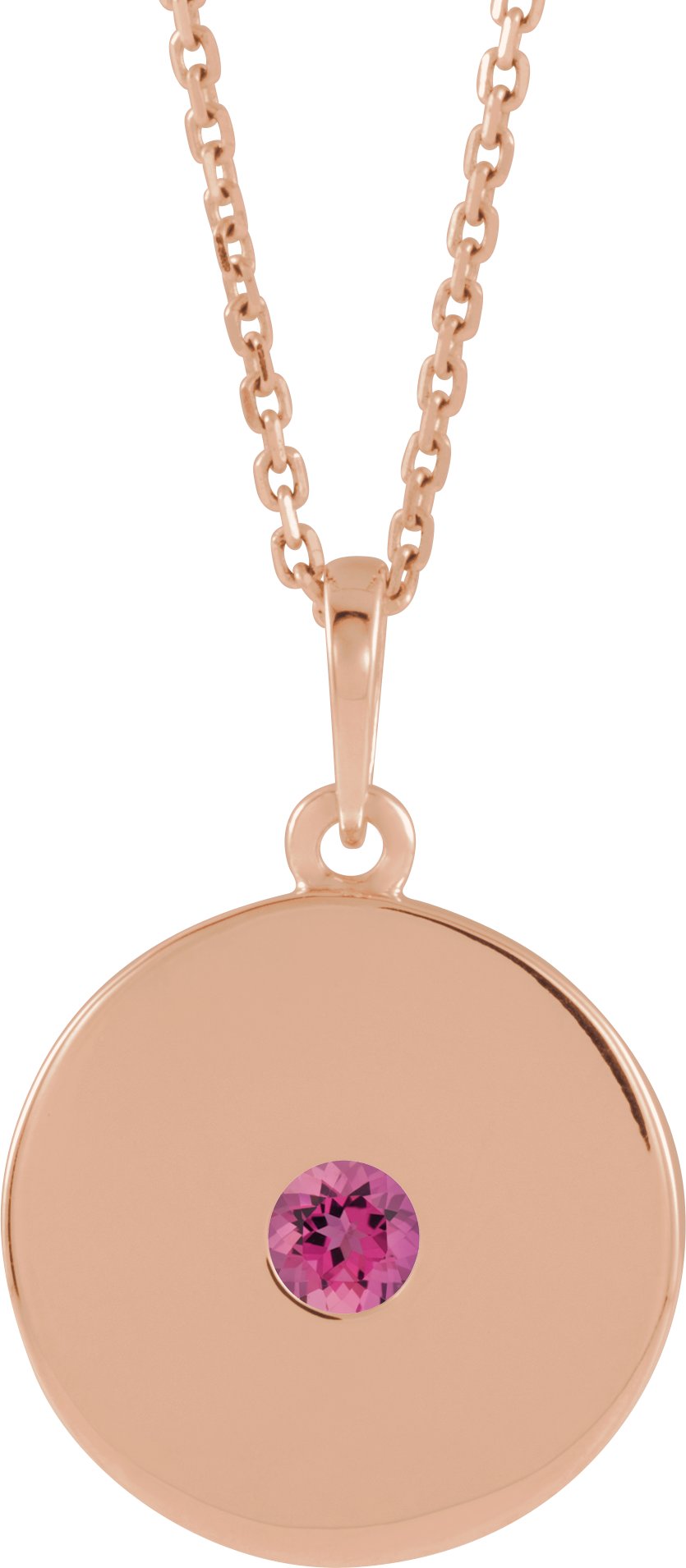 Description: Genuine Pink Tourmaline Disc Pendant Necklace