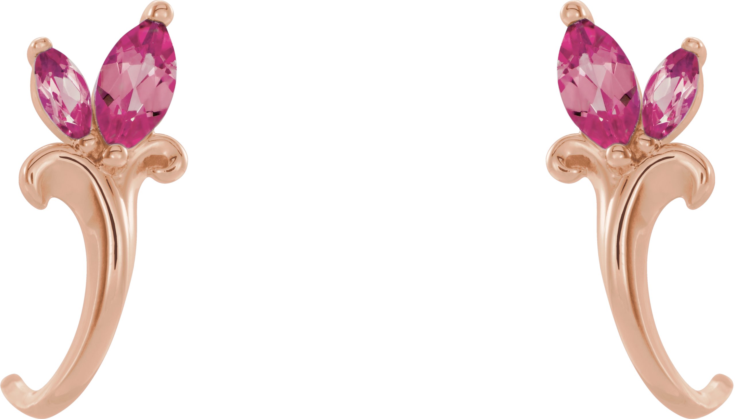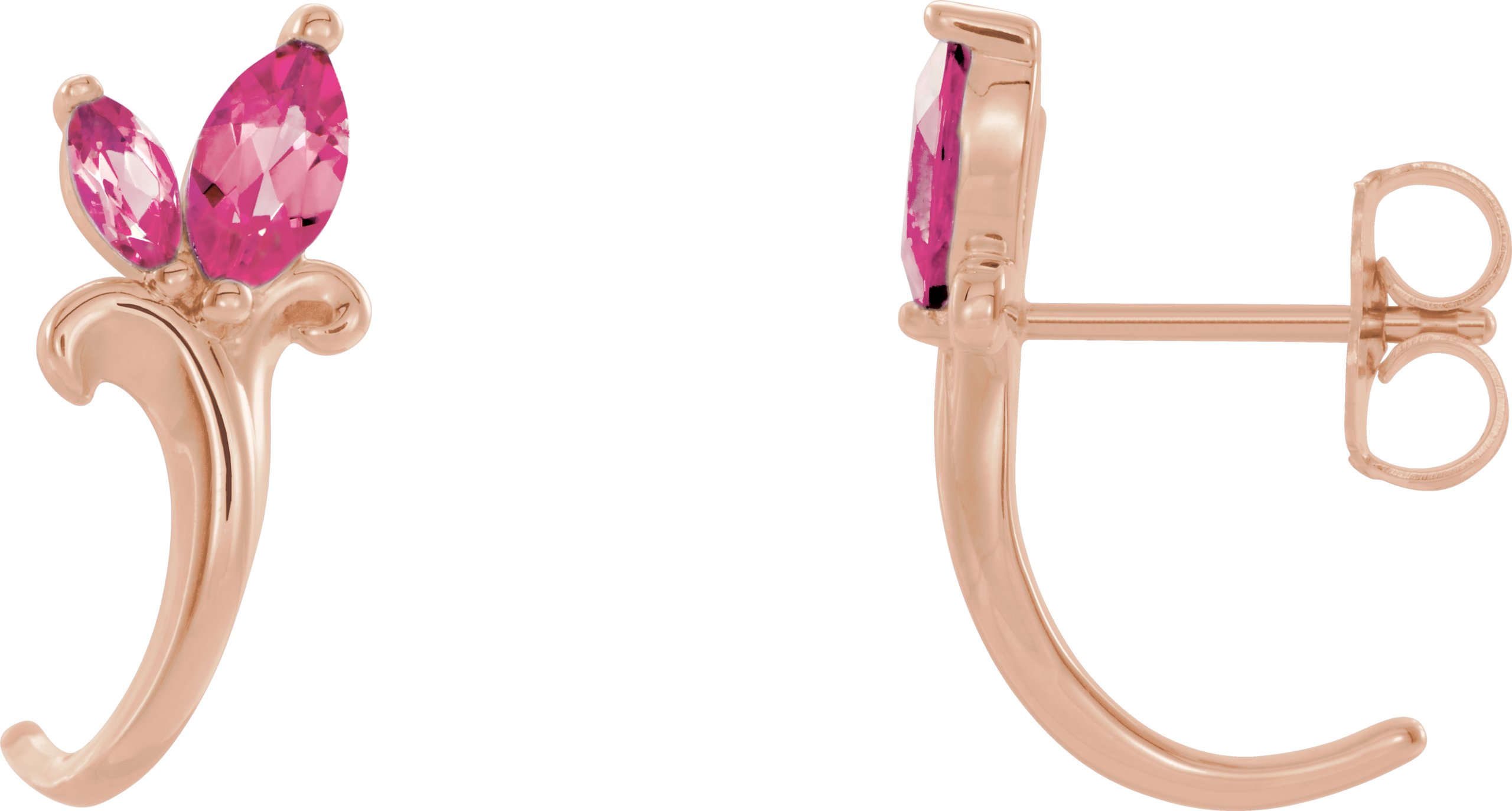 14K Rose Pink Tourmaline Floral Inspired J Hoop Earrings