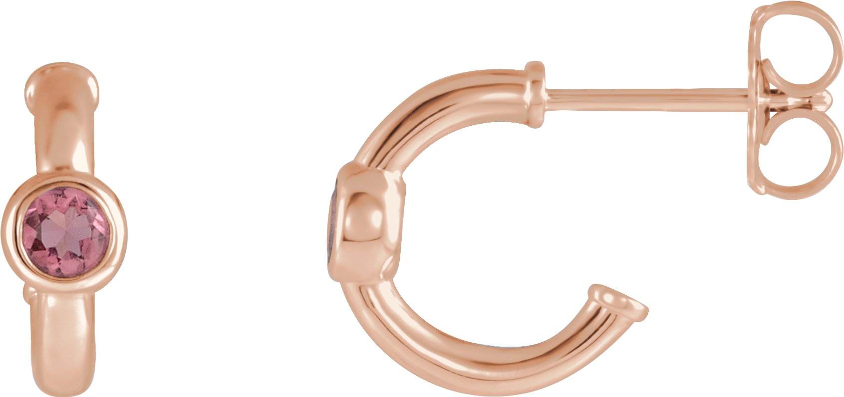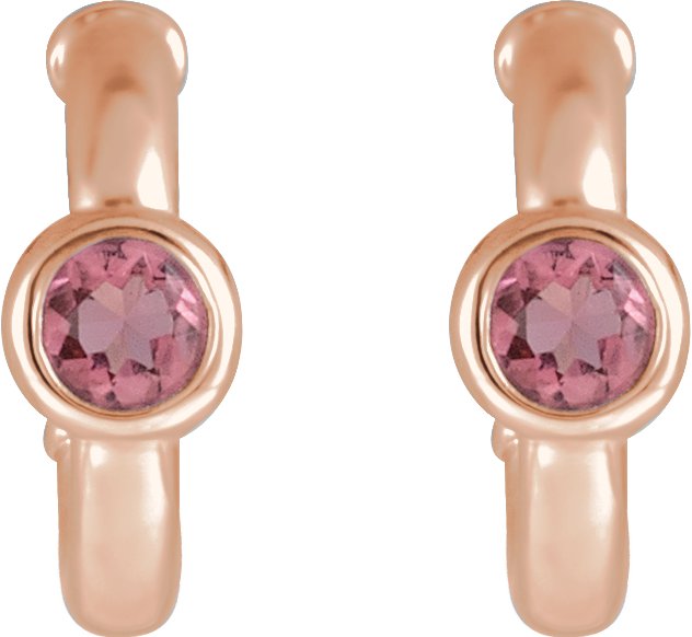 14K Rose Pink Tourmaline Hoop Earrings