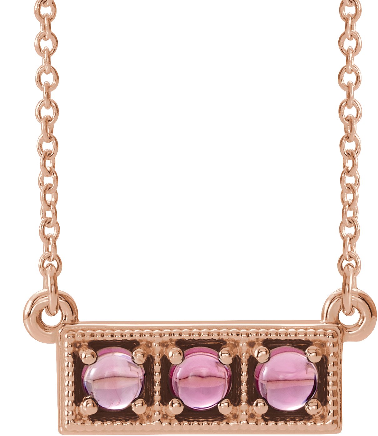 14K Rose Pink Tourmaline Three Stone Granulated Bar 16 18" Necklace Ref. 14204272
