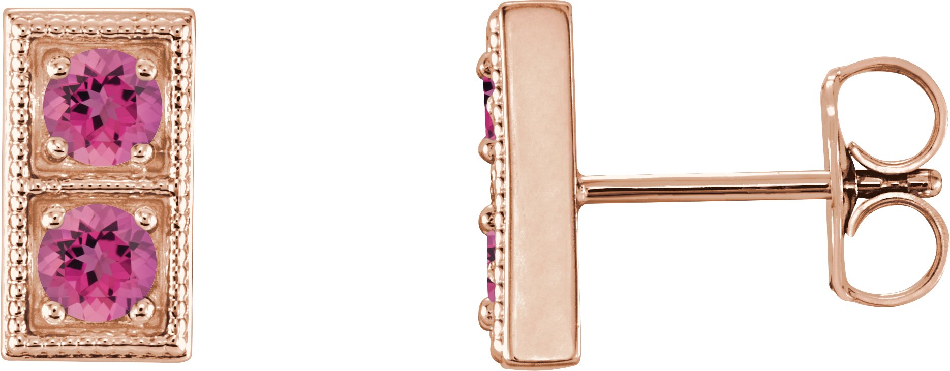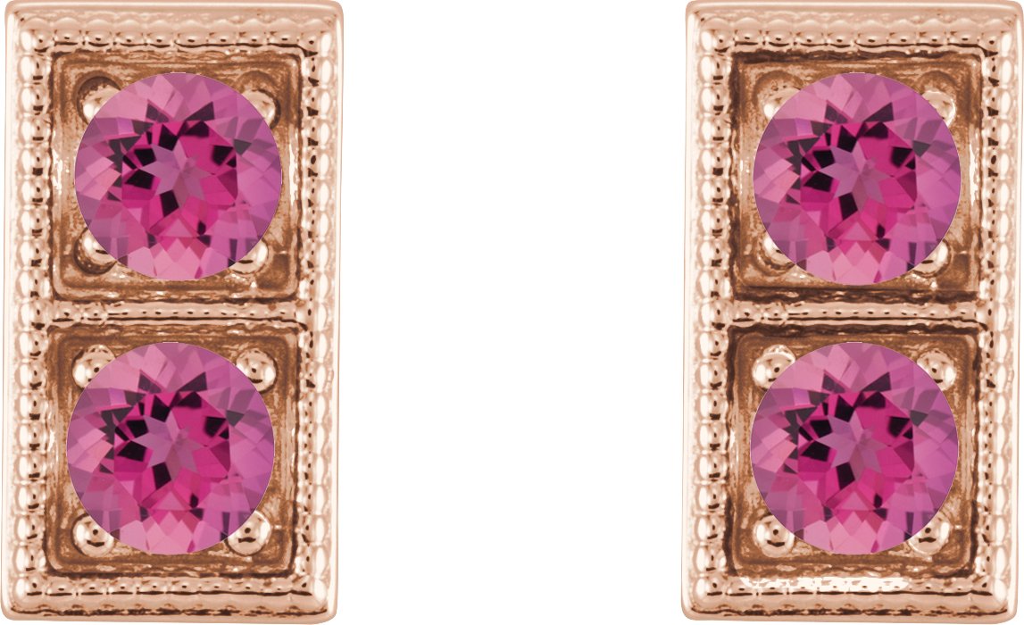 14K Rose Pink Tourmaline Two Stone Earrings