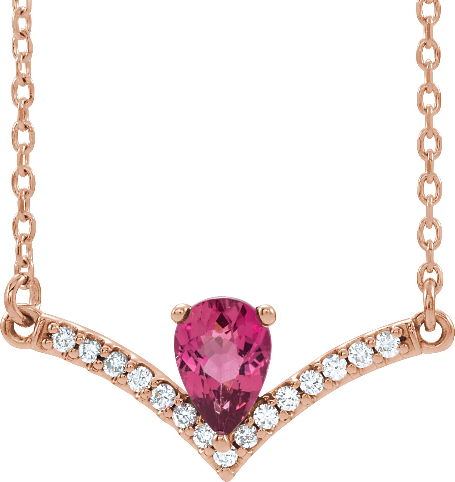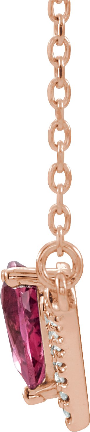14K Rose Pink Tourmaline & .06 CTW Diamond 18 inch Necklace