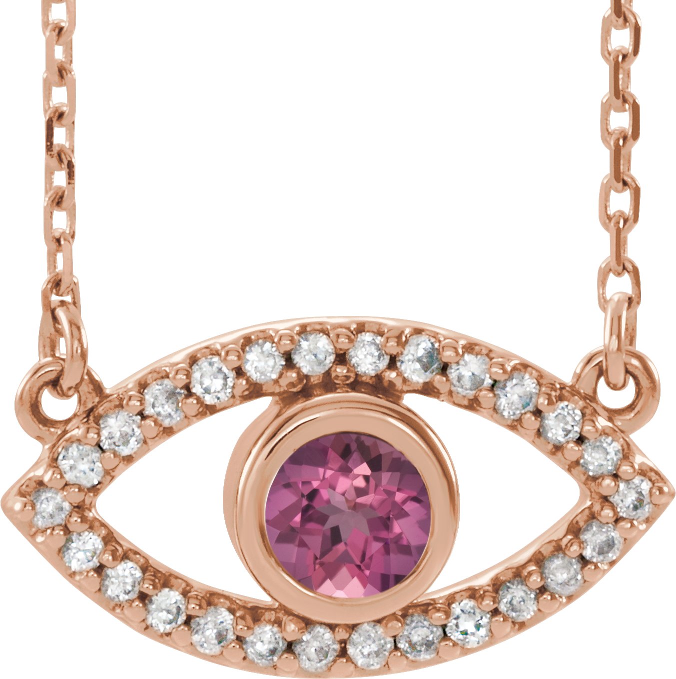 14K Rose Pink Tourmaline & White Sapphire Evil Eye 16" Necklace Ref. 14866514