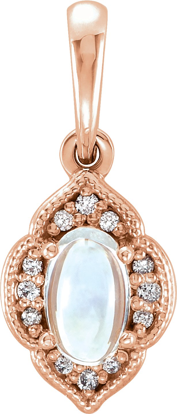 14K Rose Rainbow Moonstone & .03 CTW Diamond Clover Pendant