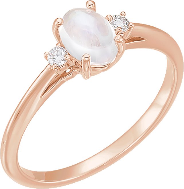 14K Rose Rainbow Moonstone & .06 CTW Diamond Ring