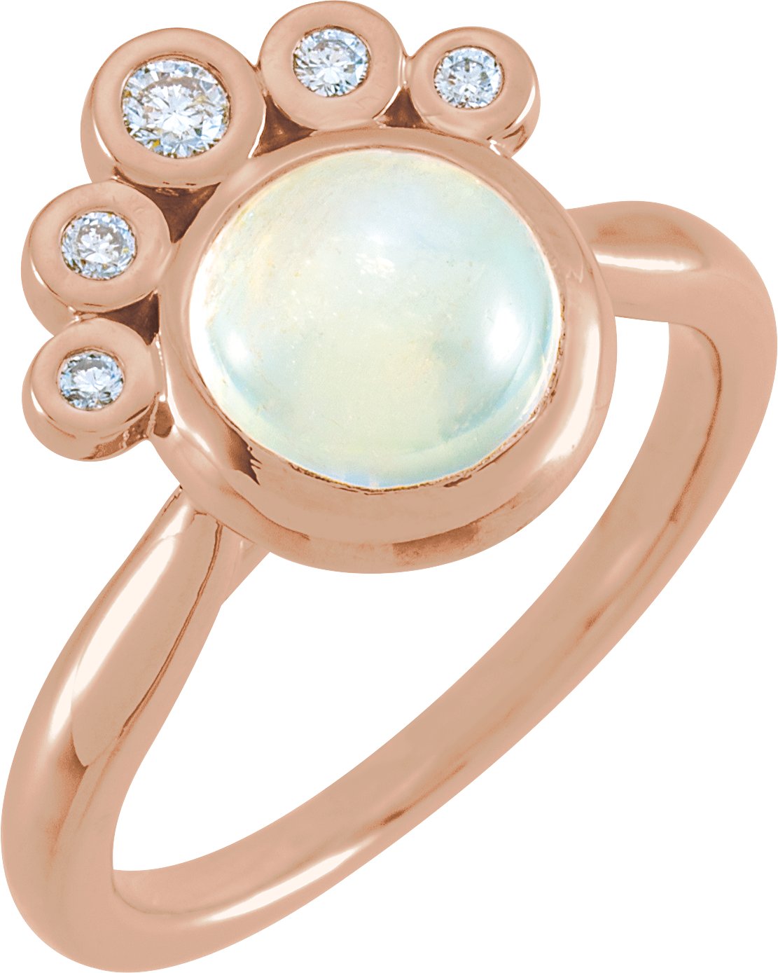 14K Rose Rainbow Moonstone & 1/8 CTW Diamond Ring