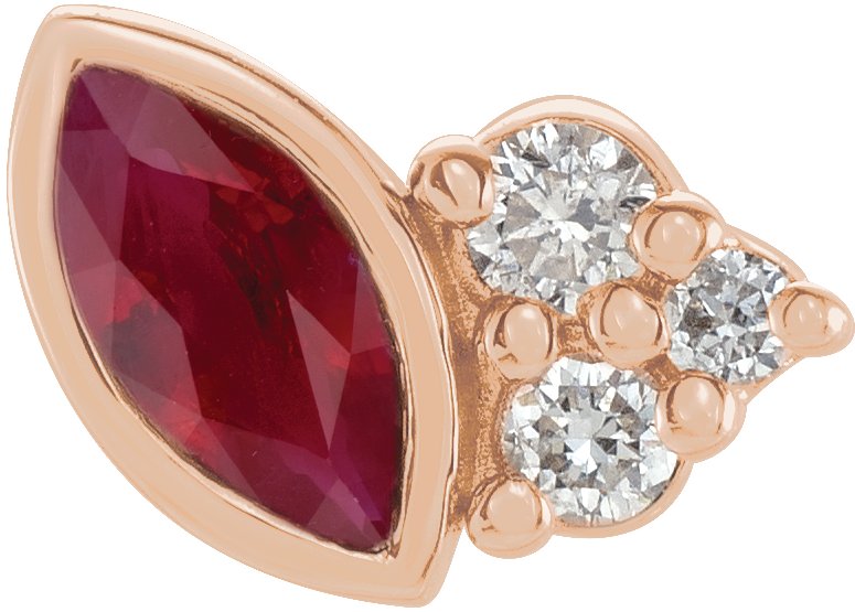 14K Rose Ruby and .03 CTW Diamond Left Earring