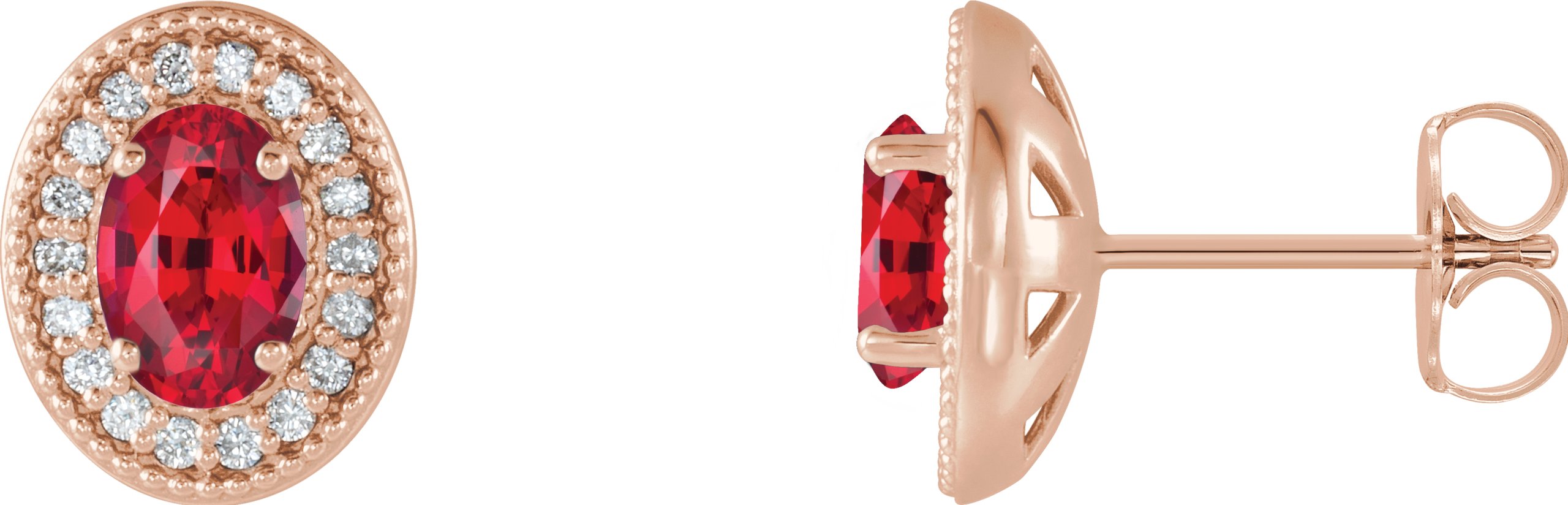 14K Rose Ruby & 1/5 CTW Diamond Halo Style Earrings