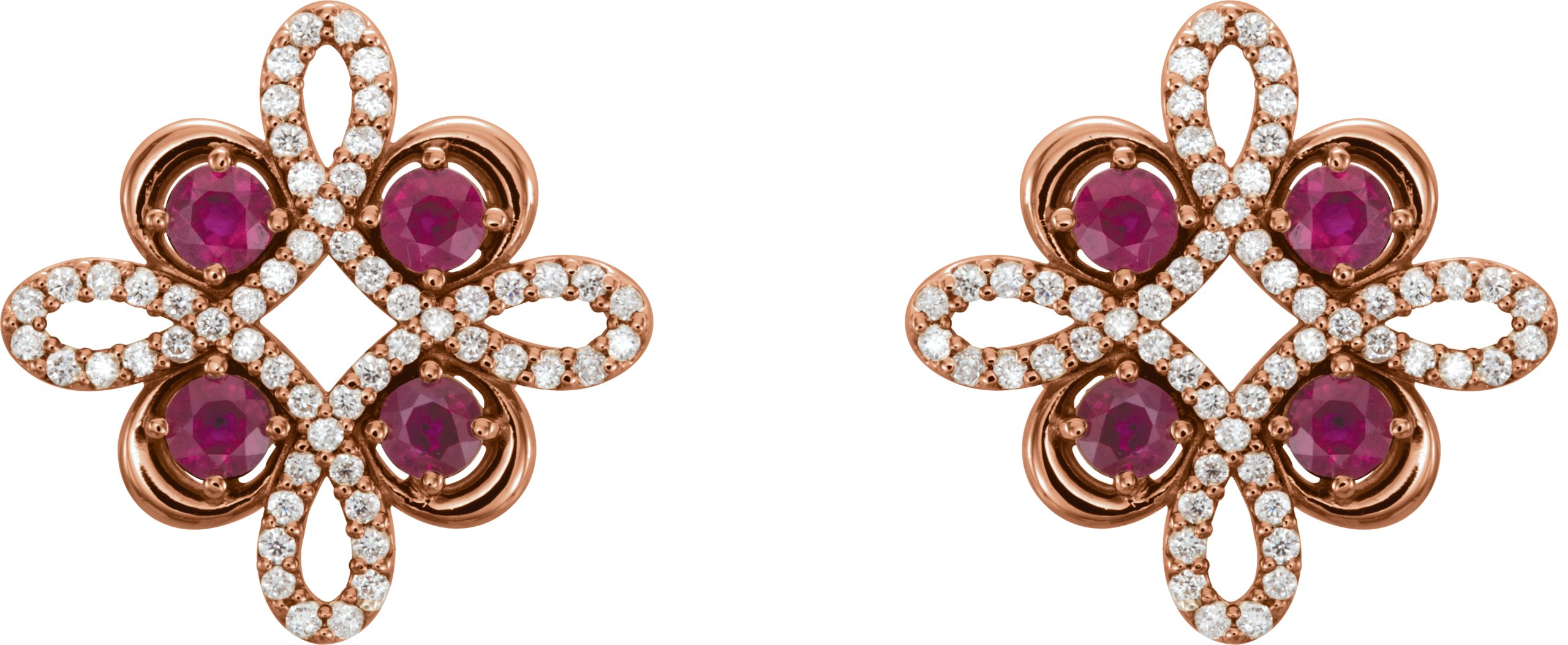 14K Rose Ruby and .25 CTW Diamond Earrings
