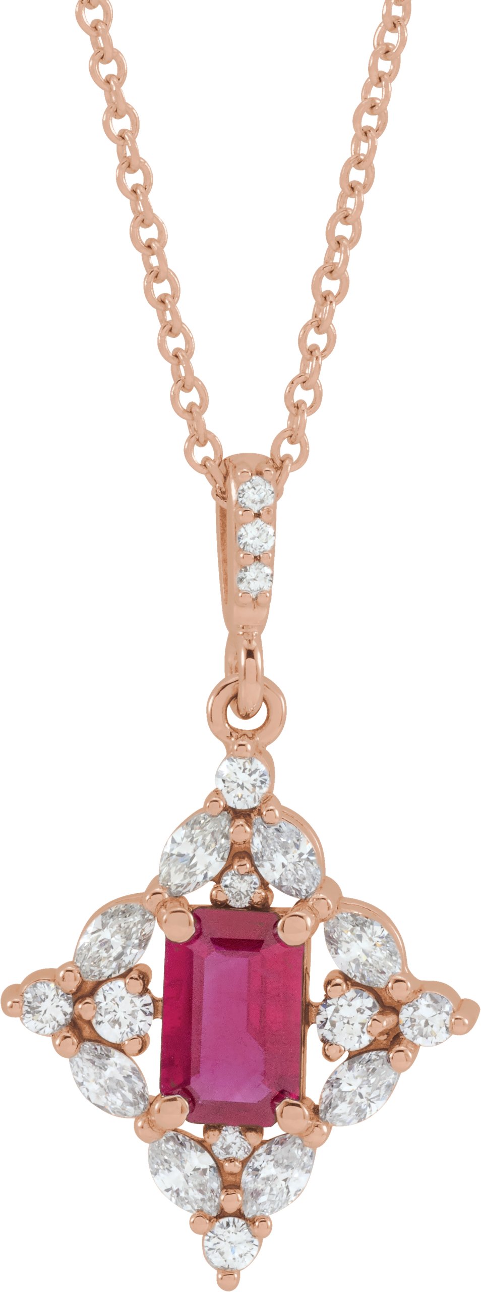 14K Rose Ruby & 3/8 CTW Diamond 16 18 inch Necklace