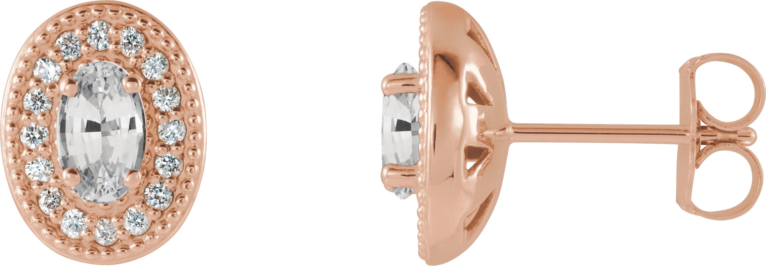 14K Rose Sapphire & 1/8 CTW Diamond Halo Style Earrings