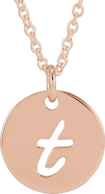 14K Rose Script Initial T 16-18" Necklace