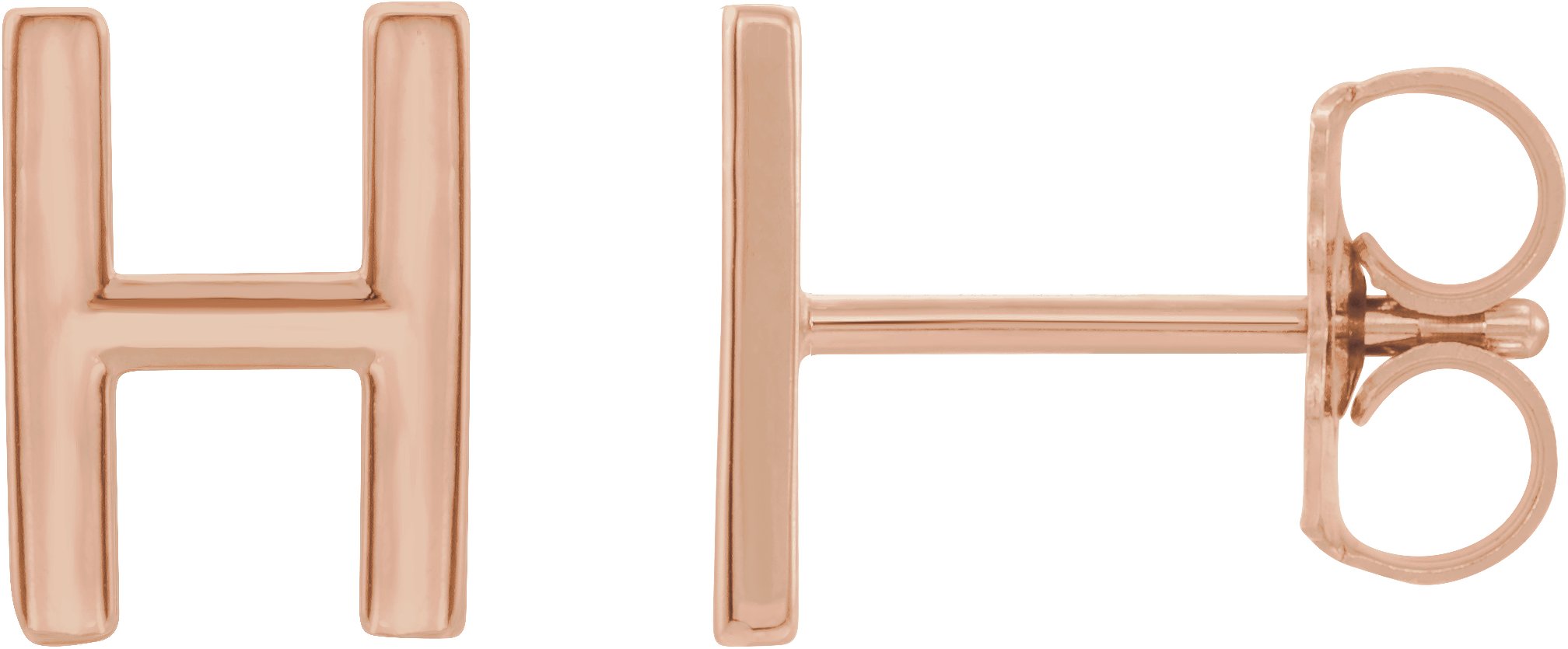14K Rose Single Initial H Earring