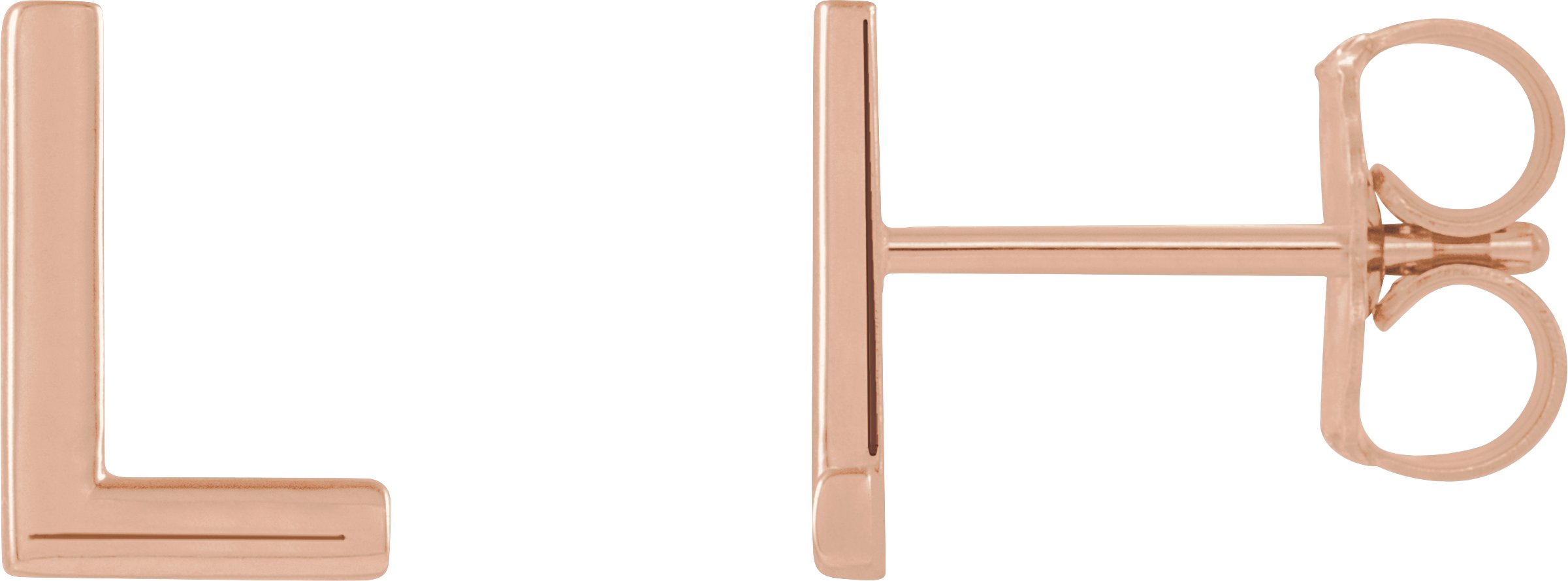 14K Rose Single Initial L Earring