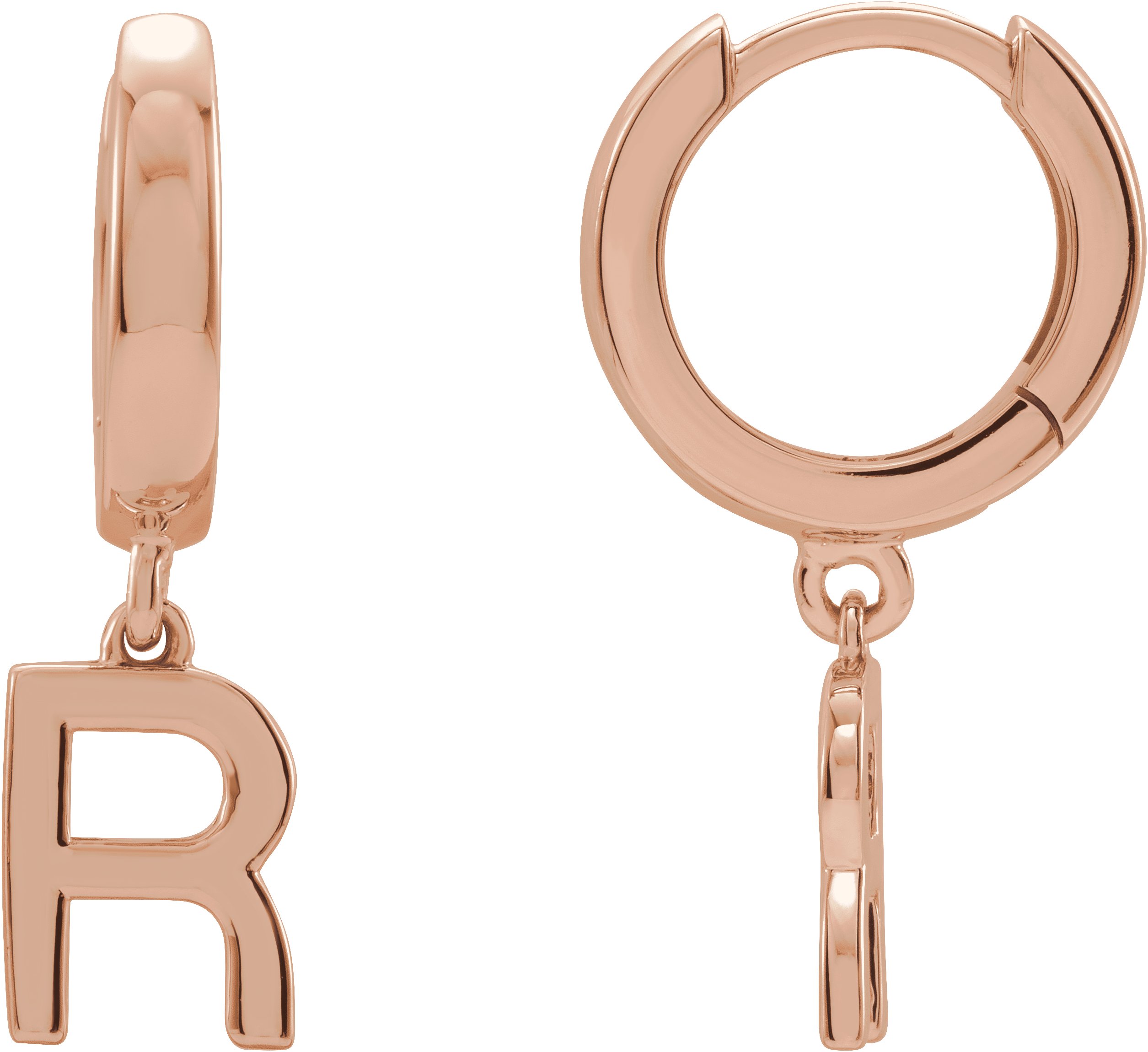 14K Rose Single Initial R Earring