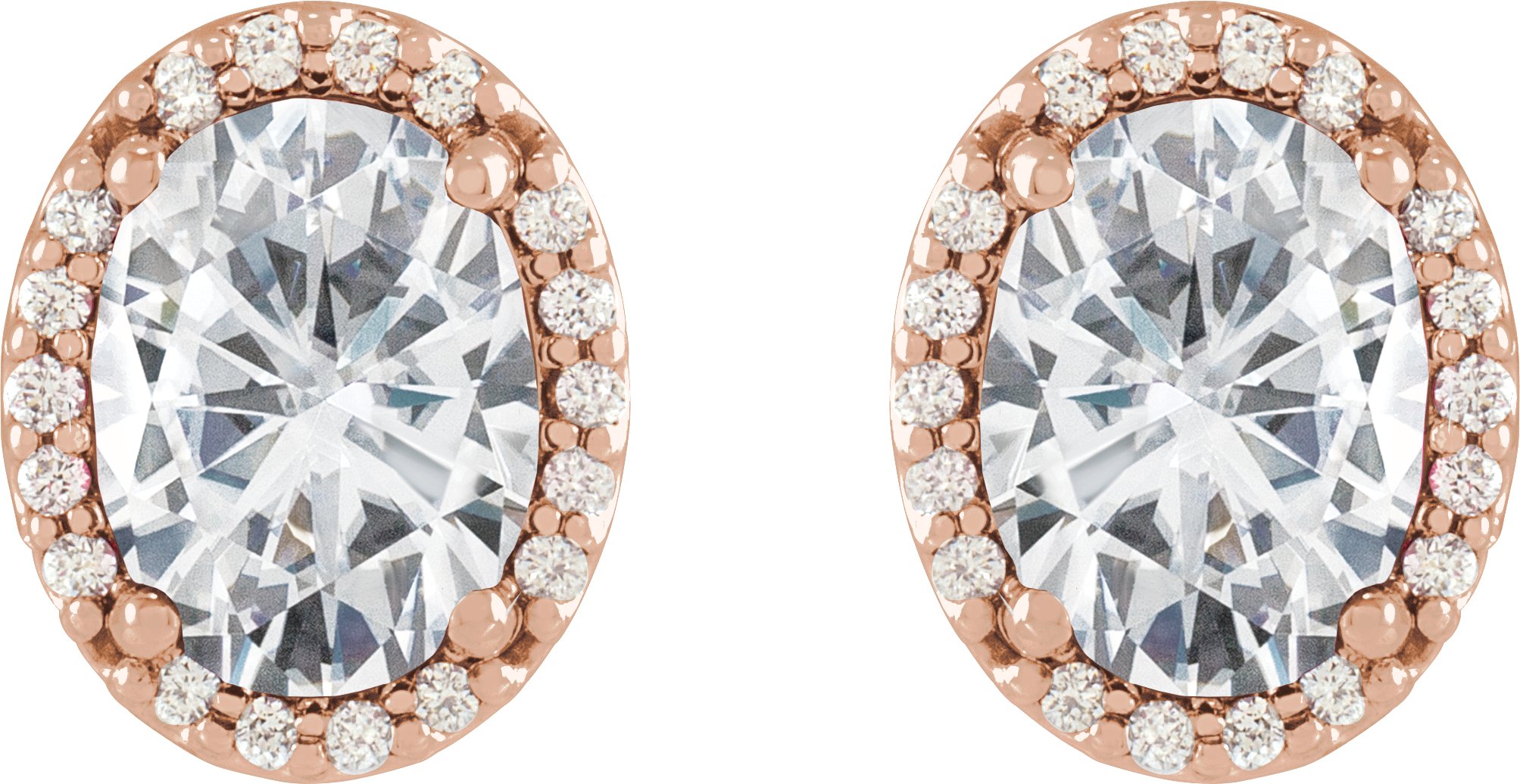 14K Rose Stuller Lab Grown Moissanite and .06 CTW Natural Diamond Halo Style Earrings Ref 19705969