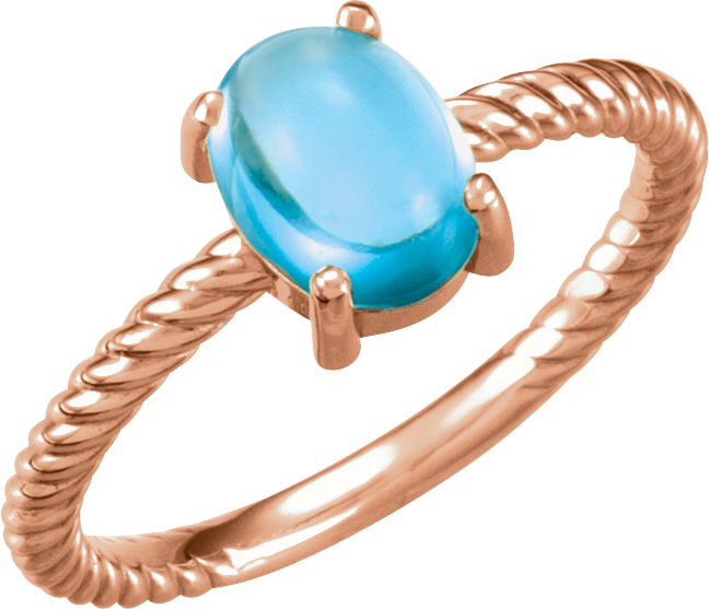 14K Rose Swiss Blue Topaz Cabochon Ring