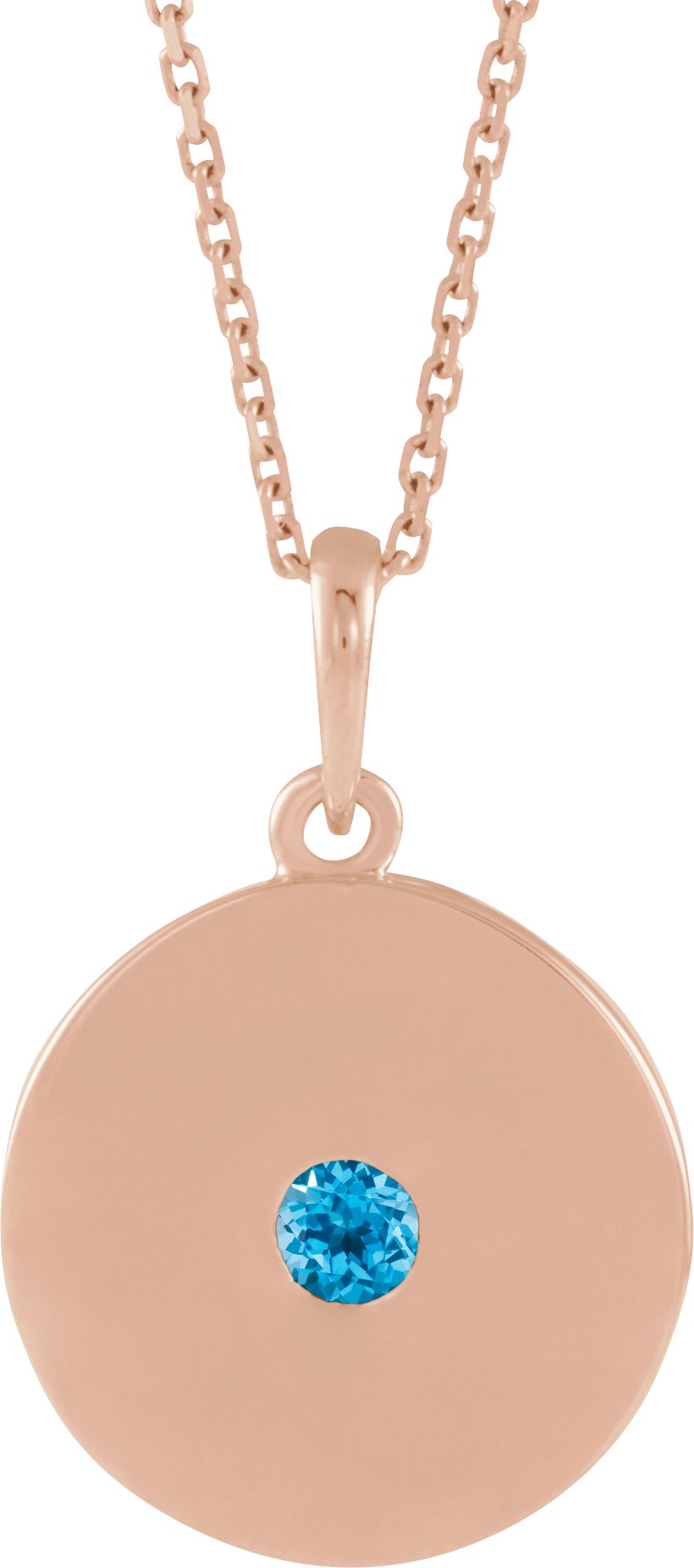 14K Rose Swiss Blue Topaz Disc 16 18 inch Necklace
