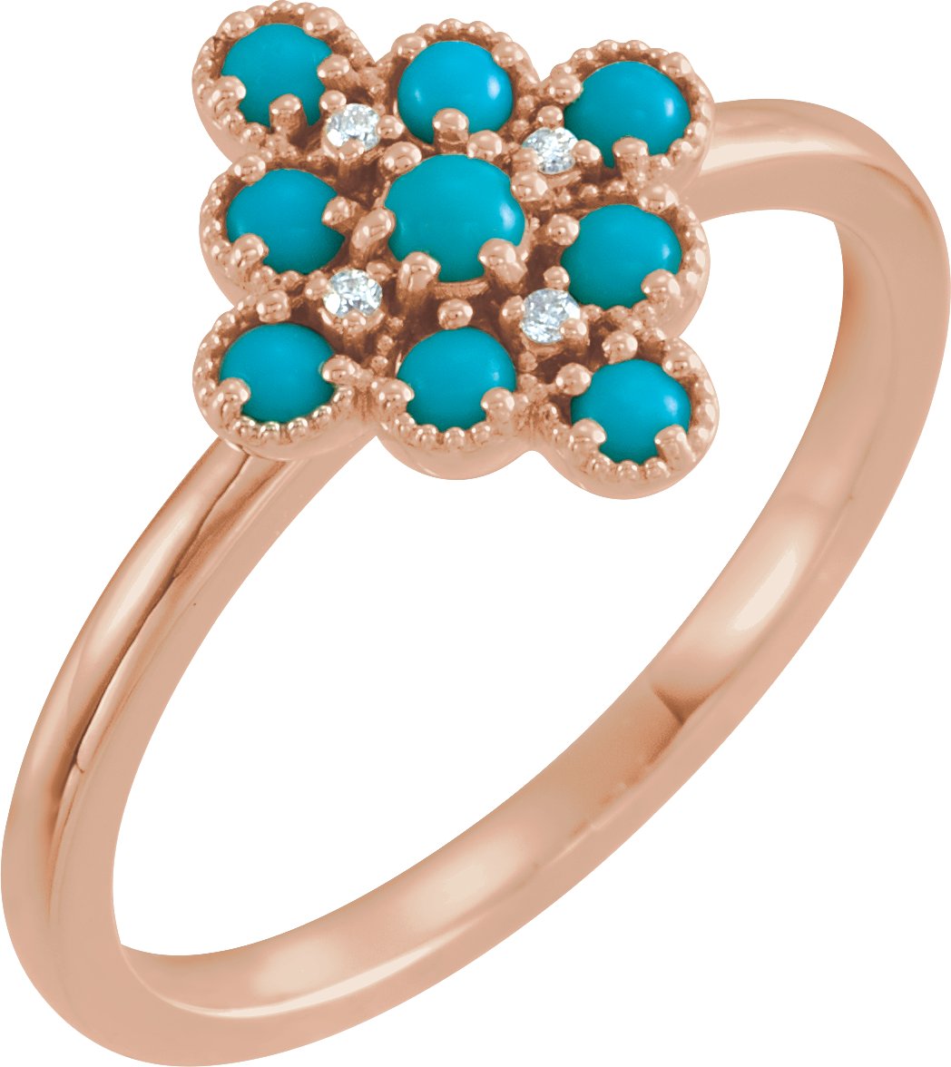 14K Rose Turquoise & .02 CTW Diamond Ring