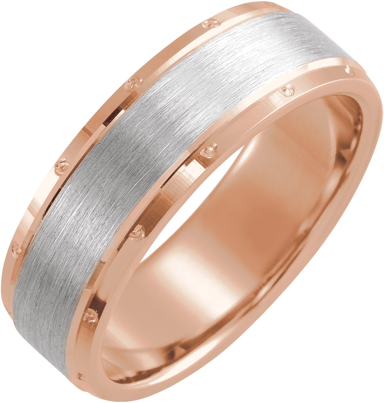 14K Rose White 7 mm Beveled Edge Band with Matte Finish Size 11 Ref 16076991