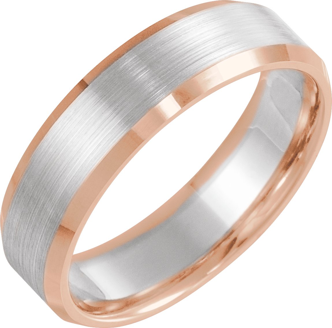 14K Rose White Rose 6 mm Beveled Edge Band with Satin Finish Size 11 Ref 15353338