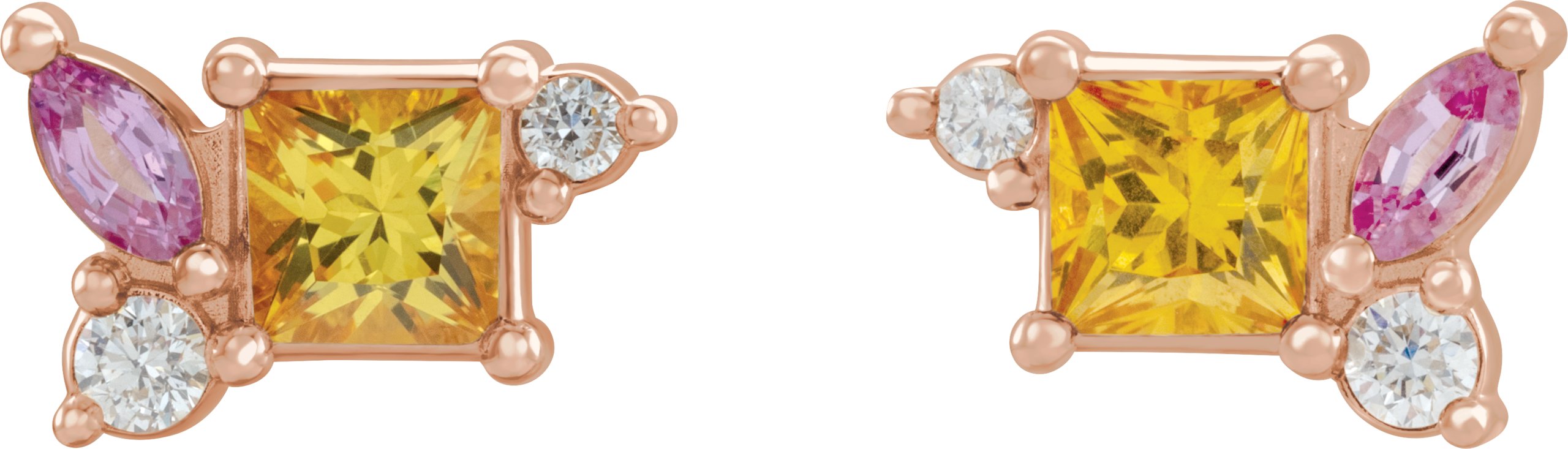 14K Rose Yellow Sapphire, Pink Sapphire, and .125 CTW Diamond Earrings