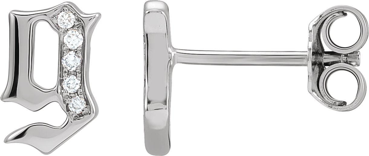 Description: .02 CTW Natural Diamond Single Gothic Initial Earring