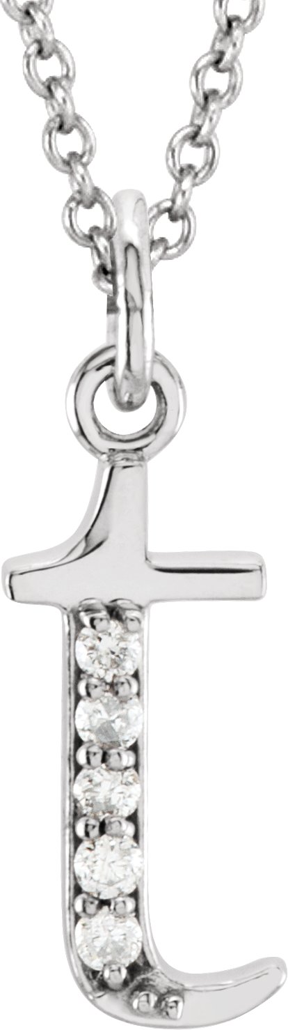14K White .025 CTW Natural Diamond Lowercase Initial T 16" Necklace