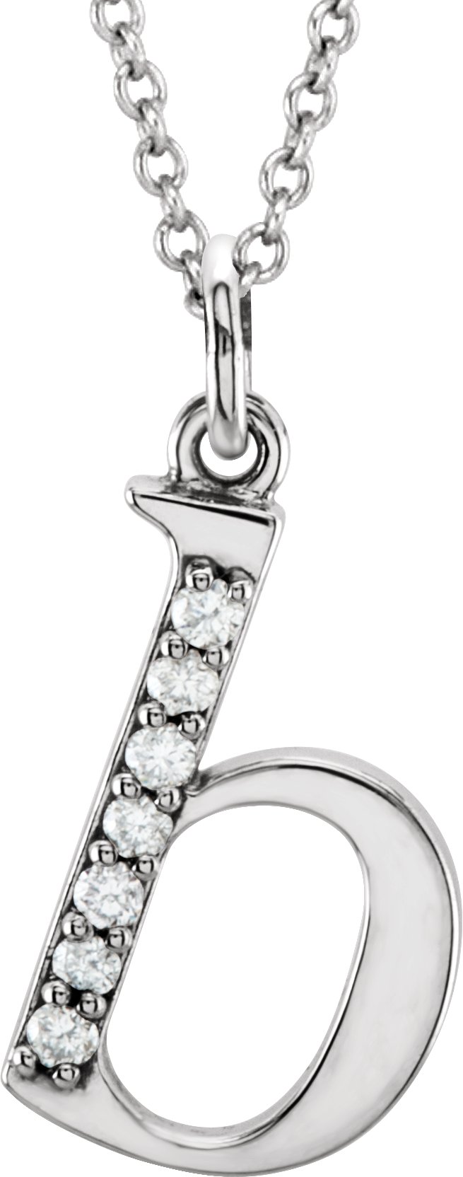 14K White .03 CTW Natural Diamond Lowercase Initial B 16" Necklace