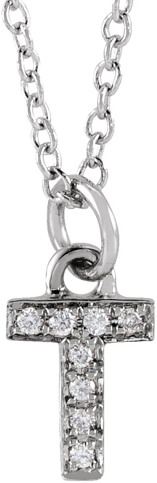 14K White .03 CTW Natural Diamond Petite Initial T 16 to 18 inch Necklace Ref 18053981